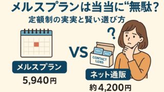 コンタクトレンズ 定期購入 メルスプランは“もったいない?”定額制と通販サイトの賢い選び方と料金比較 メニコンの定額制サービス「メルスプラン」は本当にお得?通販との価格差や使用頻度別の損得をわかりやすく解説。料金比較・メリット・デメリットを徹底検証し、あなたに最適な選択をサポートします。 コンタクトレンズ 定期購入安全なコンタクトレンズ通販サイト